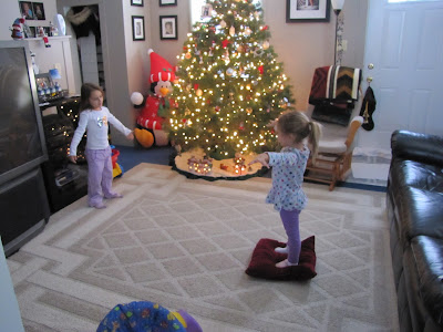 AH I love the Charlie Brown wreath, our Walgreens has a Charlie Brown tree, it is sooo cute! Love the girls warm ups too! Cute!